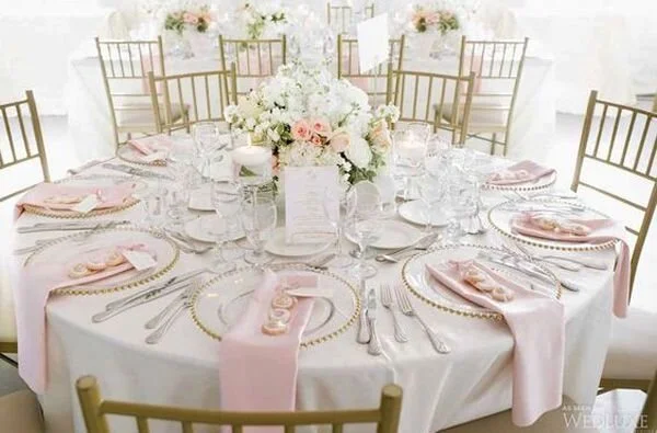 Clear glasses plate charges and clear plastic with golden beads. Both of them looks fabulous and elegant
